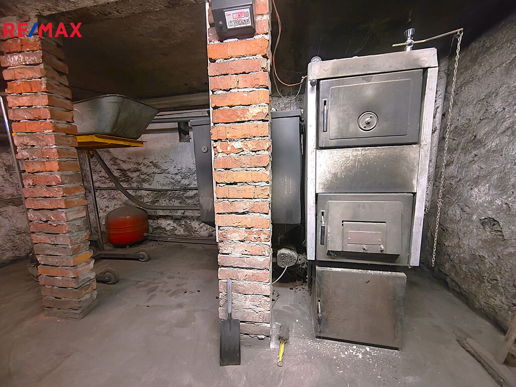 Sklepní prostory (140 m²) slouží mimo jiné jako kotelna s kotlem na tuhá paliva (černé uhlí) - vše viz přiložené půdorysy.