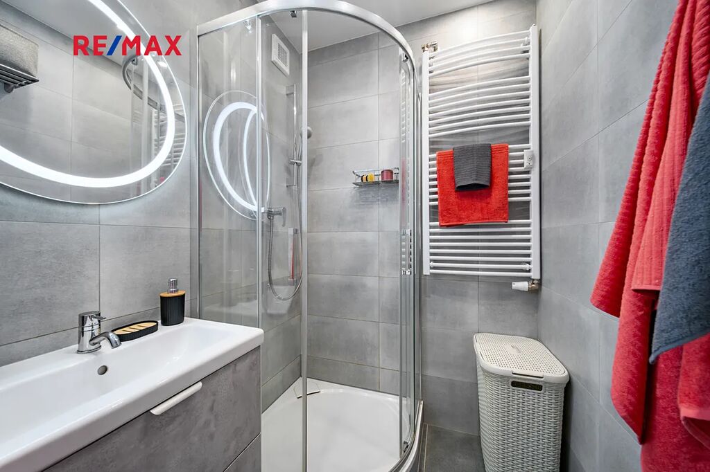 O teplo v celém domě se stará dálkové vytápění s ohřevem vody, takže se nemusíte starat o kotel ani jeho údržbu. Plastová okna a zateplení pak zajistí, že vám teplo z bytu zbytečně neuniká.