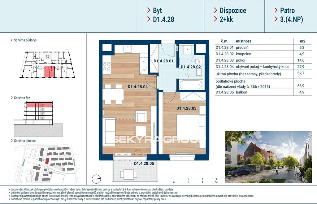 Dovolujeme si Vám nabídnout k prodeji byt 2+kk o výměře 56,9 m² s lodžií 4,9 m² v rezidenčním projektu Rezidence Čakovice.