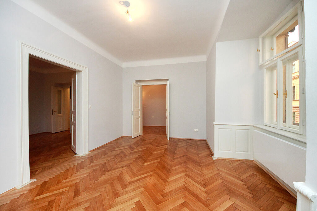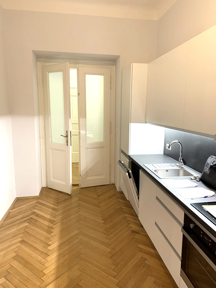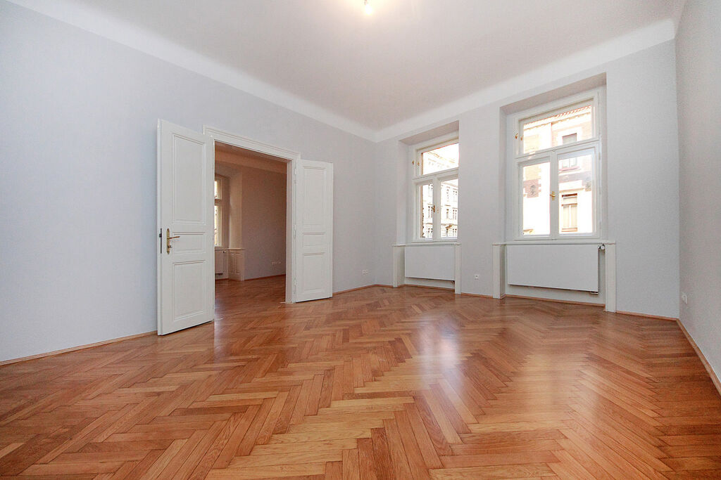 Nabízíme k dlouhodobému pronájmu nevybavený byt 4+1 o velikosti cca 121 m² v částečně zrekonstruovaném činžovním domě v ulici Kořenského 7. Byt se nachází ve III.nadzemním podlaží domu s výtahem. Dispozičně je řešen: vstupní a spojovací hala, kuchyň s kuchyňskou linkou (lednice s mrazákem, sporák, trouba, digestoř a myčka), obývací pokoj, 3 ložnice, koupelna s vanou a sprchovou zástěnou, umyvadlem a WC, samostatné WC a komora s pračkou. Byt je vytápěn a ohřev teplé vody zajištěn plynovým kondenzačním kotlem. Byt není vybaven nábytkem.