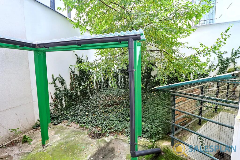Vestavěná skříň na míru poskytuje dostatek úložných prostor. K jednotce náleží také velký sklep umístěný v suterénu domu.