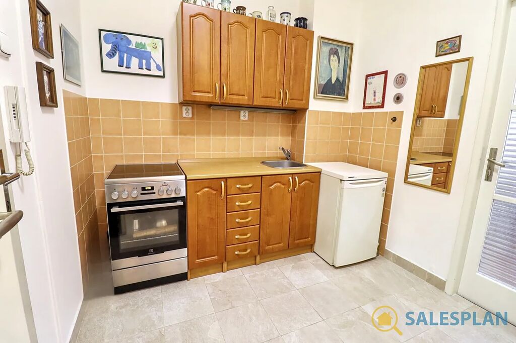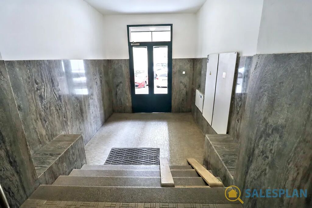 Bytová jednotka v osobním vlastnictví se nachází ve třetím nadzemním podlaží cihlového domu s výtahem. Je ve velmi dobrém a průběžně udržovaném stavu, včetně krásných parket, které jsou zajímavým designovým prvkem celého bytu. Centrální vstupní chodba, vzhledem ke svým rozměrům, poskytla prostor pro efektivní umístění kuchyňské linky. Díky vysokým stropům a renovovaným kastlovým oknům, které jsou téměř přes celou šířku hlavní místnosti, působí jednotka vzdušným a příjemným dojmem. Skvělá jižní orientace zajišťuje prosvětlení interiéru téměř po celý den. K dispozici jsou interiérové rolety. Koupelna a toaleta jsou řešeny samostatně.