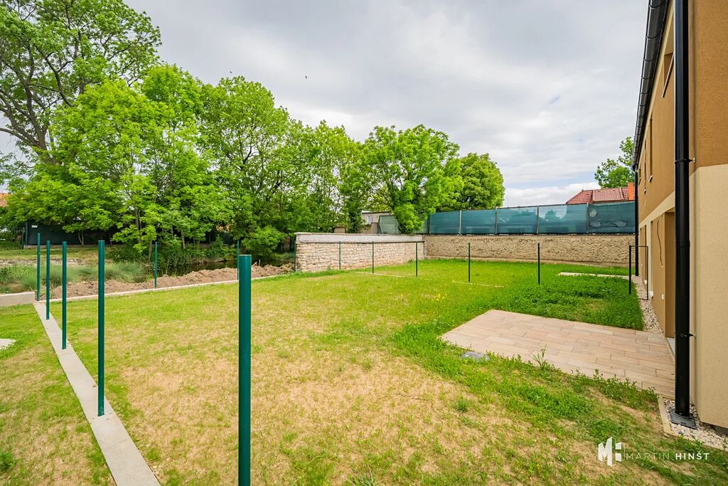 Součástí domu je také vlastní oplocená zahrada o ploše 330 m², přístupná přímo z obývacího pokoje, kde je také k dispozici terasa. Parkování je možné u domu a příjezd je po dlážděné komunikaci.