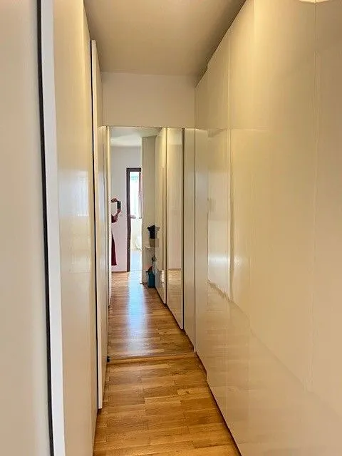 Veškerý vestavěný nábytek v bytě včetně kuchyňské linky je z kvalitních materiálů. Včetně spotřebičů a dalších prvků zůstává součástí vybavení.