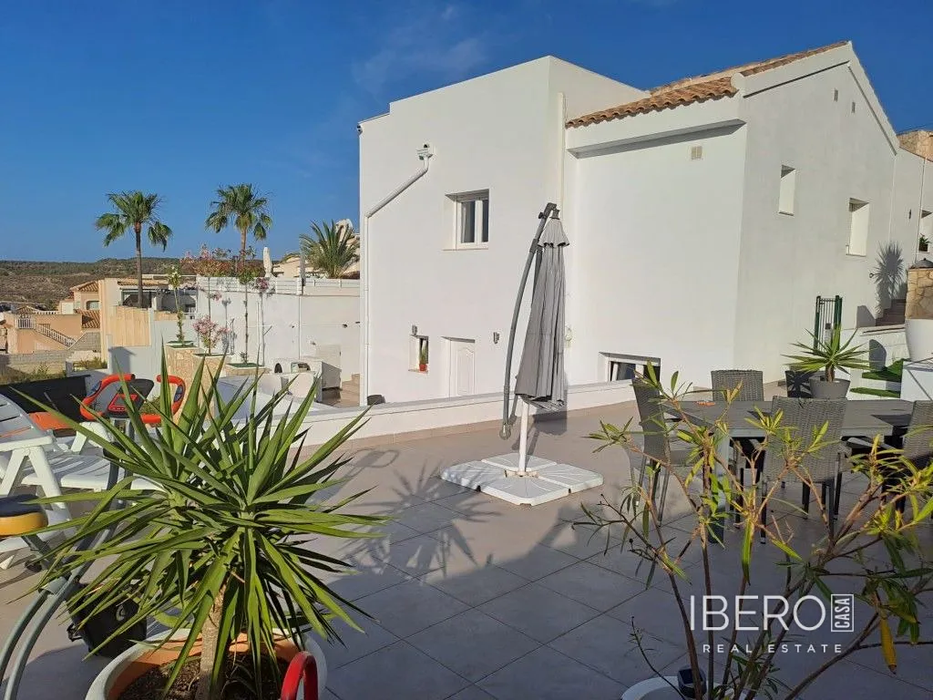 Tato krásná novostavba vily v Ciudad Quesada je postavena na pozemku o rozloze 1000 m² a skládá se ze 3 budov. Hlavní budova zahrnuje dům s obývacím pokojem/jídelnou o rozloze 70 m², otevřenou kuchyní s ostrůvkem, 2 velkými ložnicemi a 2 koupelnami a střešní terasou o rozloze 120 m².