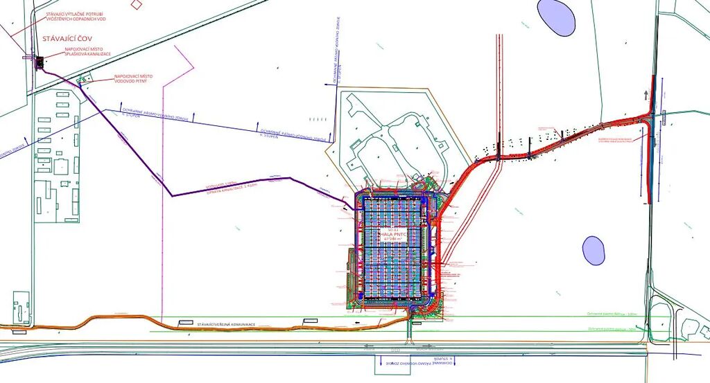 Jde o pozemek územním plánem určený pro lehkou výrobu a skladování. Na pozemku je vydáno územní rozhodnutí pro výstavbu víceúčelové haly o výměře 67.248 m2. Hala je rozdělena v poměru 50:50 (výroba, skladování) na pozemku o výměře 122.791 m2. Výška haly je 15 metrů a světlá výška pro výrobu a skladování je 12 metrů.