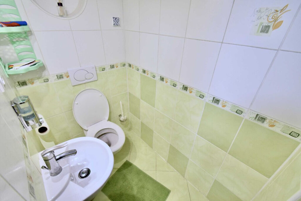 Byt se nabízí plně vybavený. Součástí kuchyňské linky je lednice, myčka, trouba a plynový sporák s digestoří. V kuchyni je i jídelní stůl se židlemi. Součástí obývací části je pohovka s konferenčním stolkem, komoda a skříň. V koupelně je sprchový kout, umyvadlo a toaleta. Součástí bytu je patro na postel.