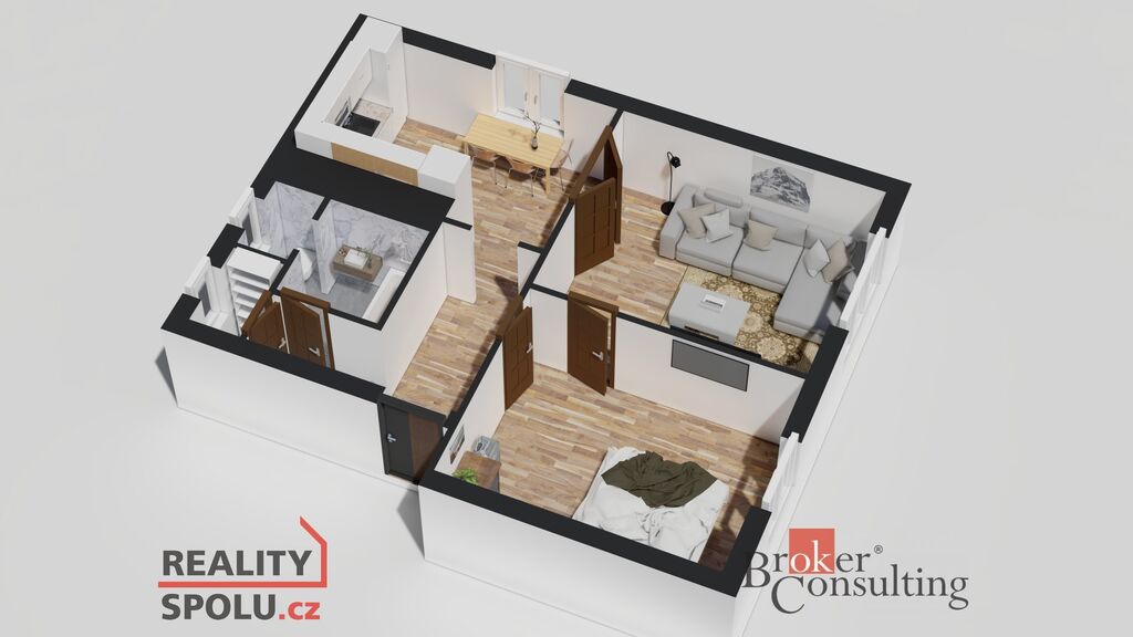 Byt je velmi dobře situován a je připraven jak ke kompletní rekonstrukci, tak k jemné modernizaci. Vše dle vašich představ. Dispozici bytu 2+1 tvoří obývací pokoj, ložnice, samostatná kuchyně, předsíň a koupelna s WC. K bytu dále náleží sklepní kóje cca 1m2 v suterénu budovy.