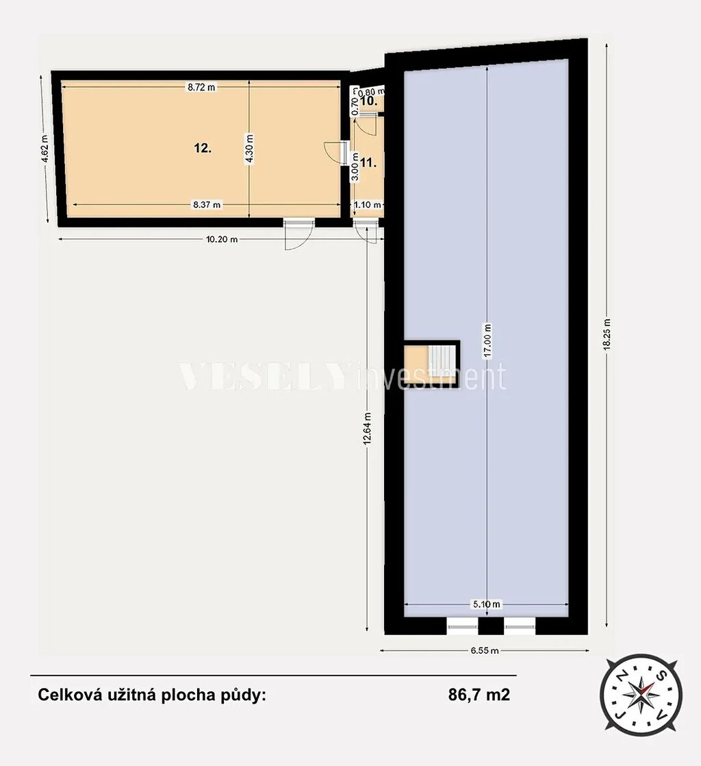 Tvoří volný půdní prostor s výškou ve štítu 4m, vhodný pro vytvoření plnohodnotných pokojů, nebo úložného prostoru.