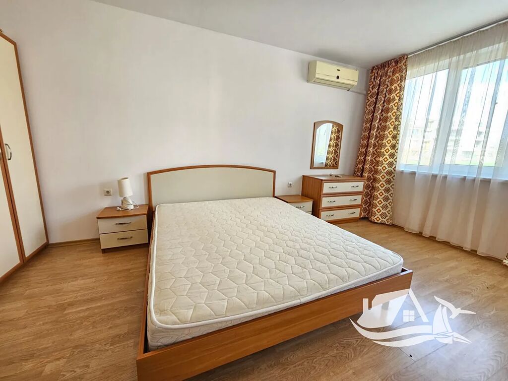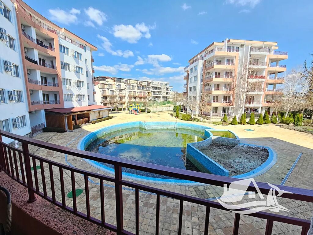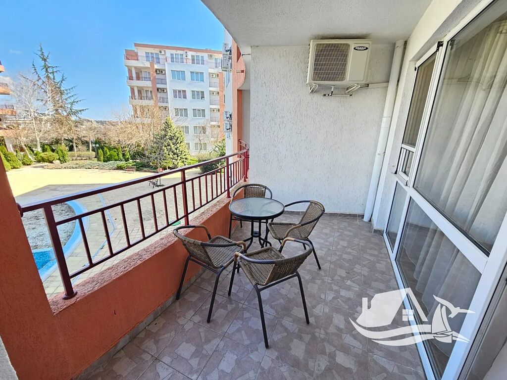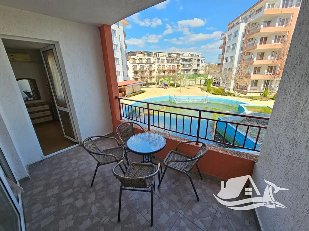 Dispozice zahrnuje vstupní předsíň, prostorný obývací pokoj s kuchyňským koutem, samostatnou ložnici, koupelnu s toaletou a balkón s příjemným výhledem na bazén. Apartmán je ve velmi dobrém stavu a je vhodný jak pro celoroční bydlení, tak pro rekreační účely nebo investici s potenciálem pronájmu.