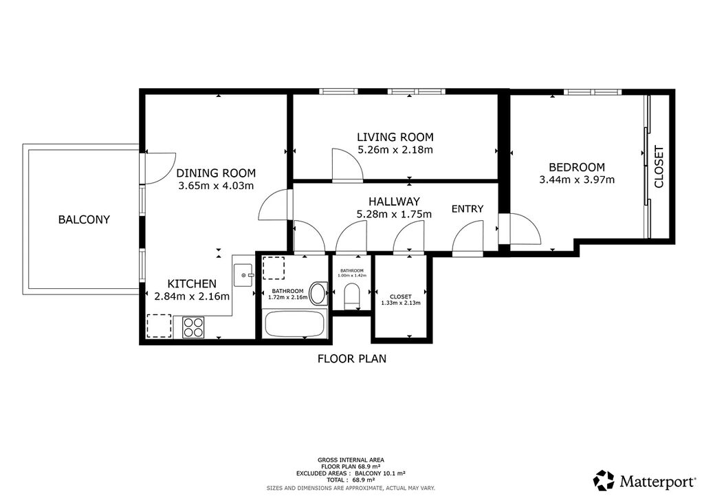 Byt je situován ve druhém NP. a je orientován na severozápad. Vstup do jednotky vede do prostorné chodby, která je součástí bytu a ze které je přístup do všech místností. Na severní straně se nacházejí dvě ložnice, obývací pokoj je orientován na západ a disponuje přímým vstupem na balkon. Dispozici doplňuje praktická šatna s úložným systémem, samostatná toaleta a koupelna s vanou, kde je připravena instalace na pračku i sušičku. Jeden z pokojů je možné využít jako dětský, pracovnu nebo šatnu dle potřeb.