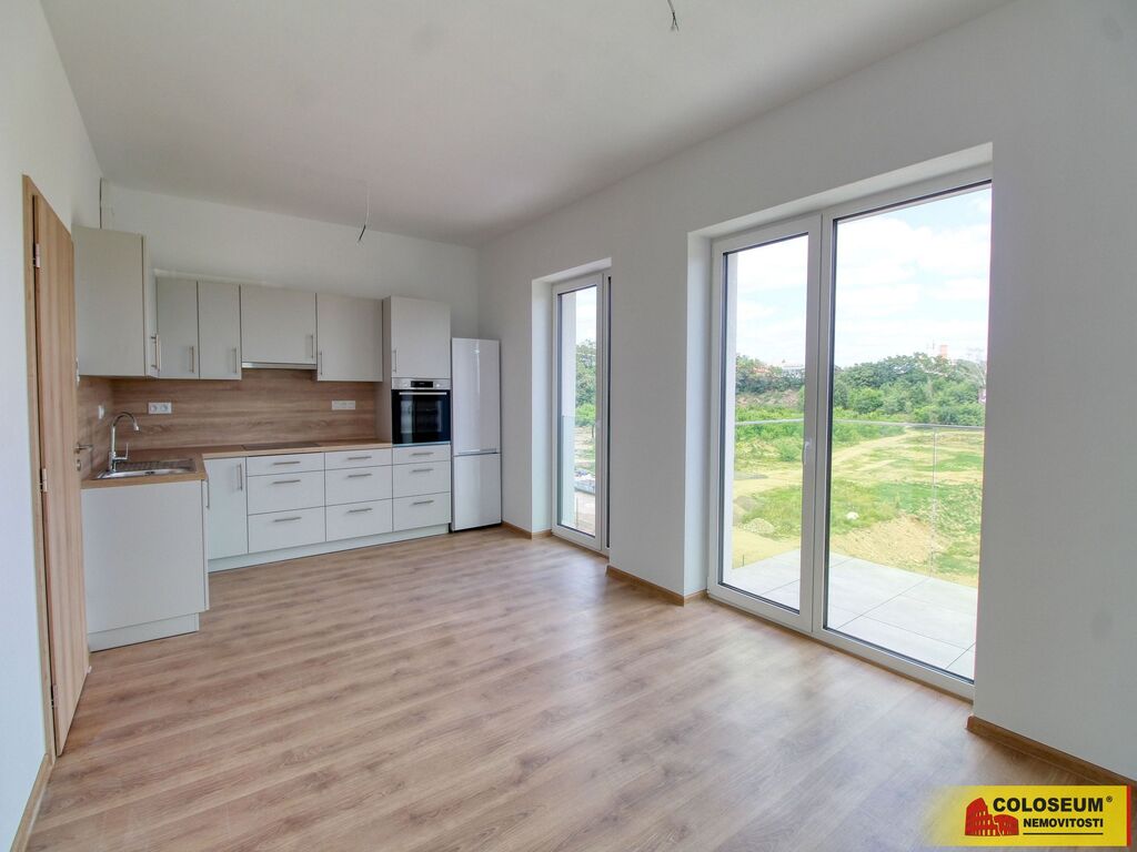 Byt se skládá z obývacího pokoje s kuchyňským koutem, pokoje, ložnice, koupelny s toaletou, předsíně a balkonu. Byt se pronajímá nevybavený, je osazen novou kuchyňskou linkou, sklokeramickou varnou deskou, troubou a lednicí. K bytu je možné pronajmou parkovací stání v podzemní garáži, vlastní venkovní stání a sklepní kóji.