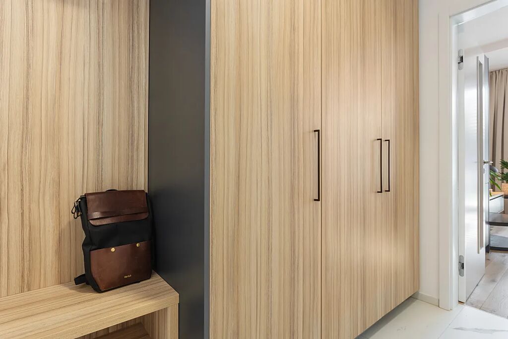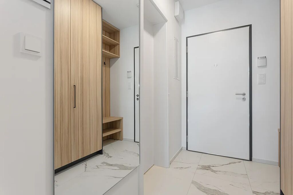 Jsou zde kvalitní dřevěné podlahy, podlahové vytápění a cirkulace vzduchu. Celý byt je plně klimatizovaný. Dostatek úložného prostoru zajišťují vestavěné skříně v předsíni nebo prostorný zděný sklep 5m2.