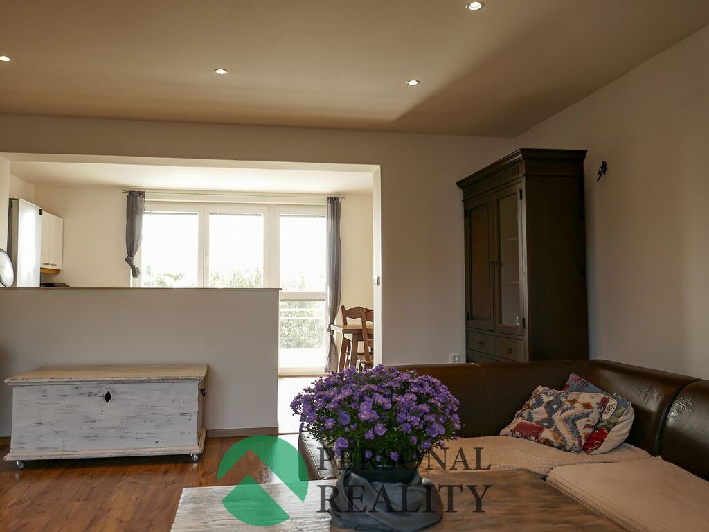 Byt je částečně zařízený, kuchyňskou linkou se sporákem, myčkou a pračkou se sušičkou.