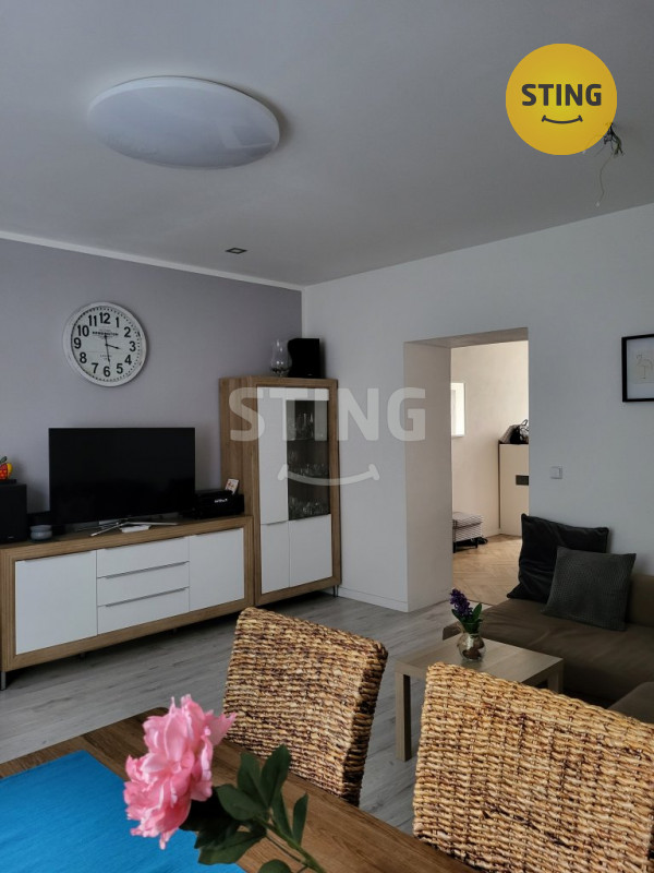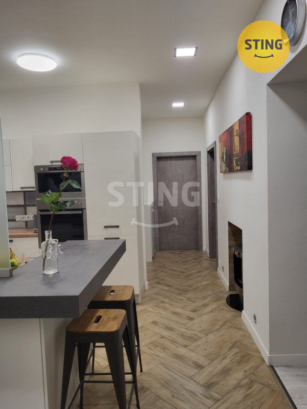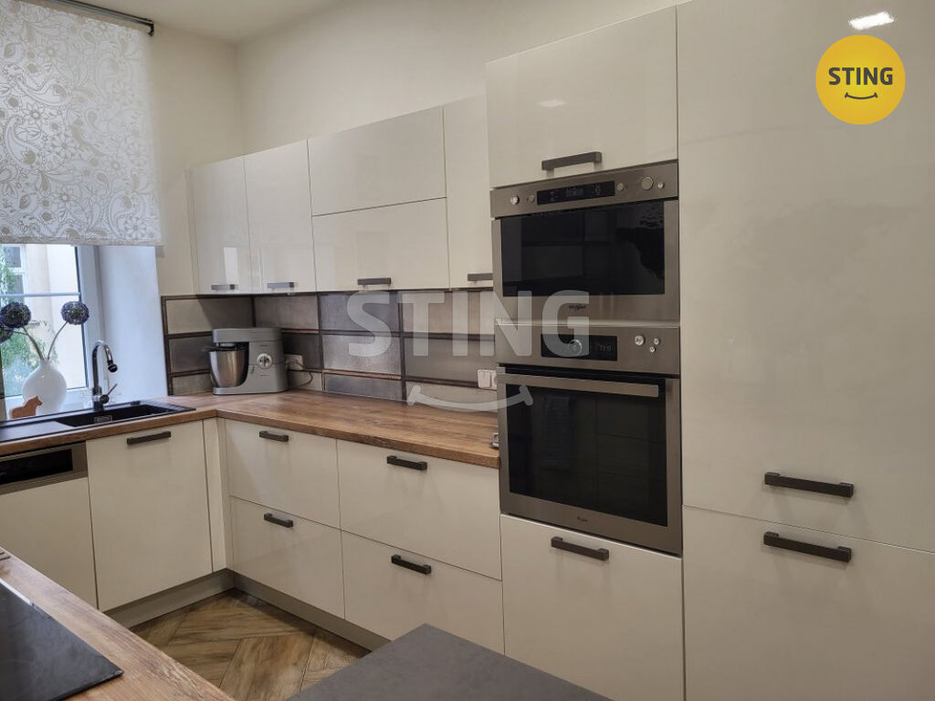 Z dvoukřídlových vstupních dveří se dostáváme do předsíně, která má chytré svícení ve formě nočního, orientačního LED osvětlení na pohybové čidlo. Po její levé straně se nachází samostatná toaleta a menší balkon. Po pravé straně se dostaneme do prostorného obývacího pokoje, který je osobitý příjemným stropním LED osvětlením na dálkové ovládání, které je umístěno po stranách celé místnosti. Další prostornou místností je ložnice, která nabízí dostatek místa pro úložné a odkládací systémy, třetí pokoj je menší , velmi vhodný pro dětský pokoj nebo pracovnu. Pokoje jsou neprůchozí a světlé - velká dělená okna, úsporné LED osvětlení. Kuchyň je vybavena moderní kuchyňskou linkou na míru s vestavěnými spotřebiči a oboustranným kuchyňským ostůvkem s barovým posezením, které tvoří zajímavou dominantu bytu. Koupelna s oknem, vybavena vanou, závěsné WC a závěsný bidet - jistě oceníte nezávislé podlahové topení. v bytě je také další WC s oknem. V místnostech plovoucí podlahy, vstupní část, kuchyň a koupelna, také obě WC s dlažbou. Nízké náklady na bydlení! Parkování je možné přímo u domu, velkou výhodou rezidentská karta. K nemovitosti náleží sklep.