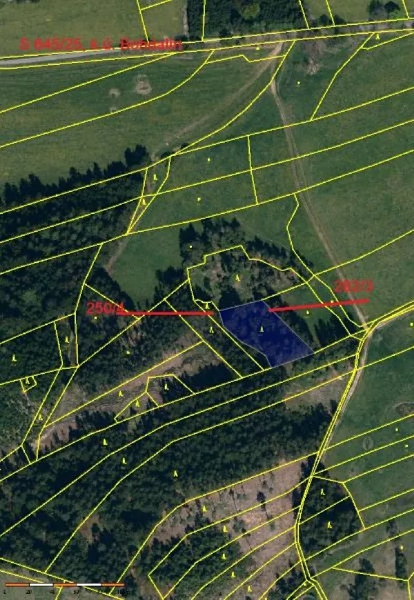 Jedná se o prodej 2 lesních pozemků parc. č. 250/4 o výměře 488 m2 a parc. č. 282/3 o výměře 2240 m2, obklopených privátními lesy, na kterých roste smrkový porost.