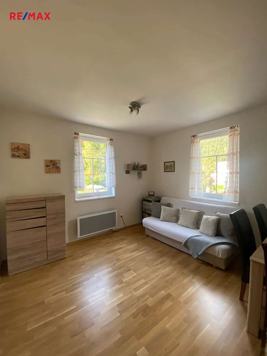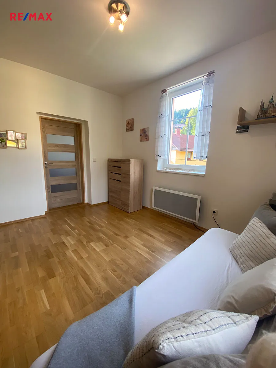 Součástí bytu je nová kuchyňská linka se spotřebiči (lednice zn. ZANUSSI, trouba, sklokeramická deska), patrová postel, stůl, židle, skříně atd., vše je v ceně bytu. Nová koupelna se sprchovým koutem a samostatné WC, el. žebřinové topení, dlažba. Obývací pokoj propojený s kuchyňským koutem, vše útulně a nově zařízeno. Pokoj na spaní má na míru postavenou postel se schody a tím se vytvořilo místo pro dalši spaní dole pod ní – počet míst na spaní až šest 2-2-2. Parkovací stání je před domem na společném pozemku, který je k domu. V domě není žádná místnost na lyže ani sklepy - ve výstavbě.