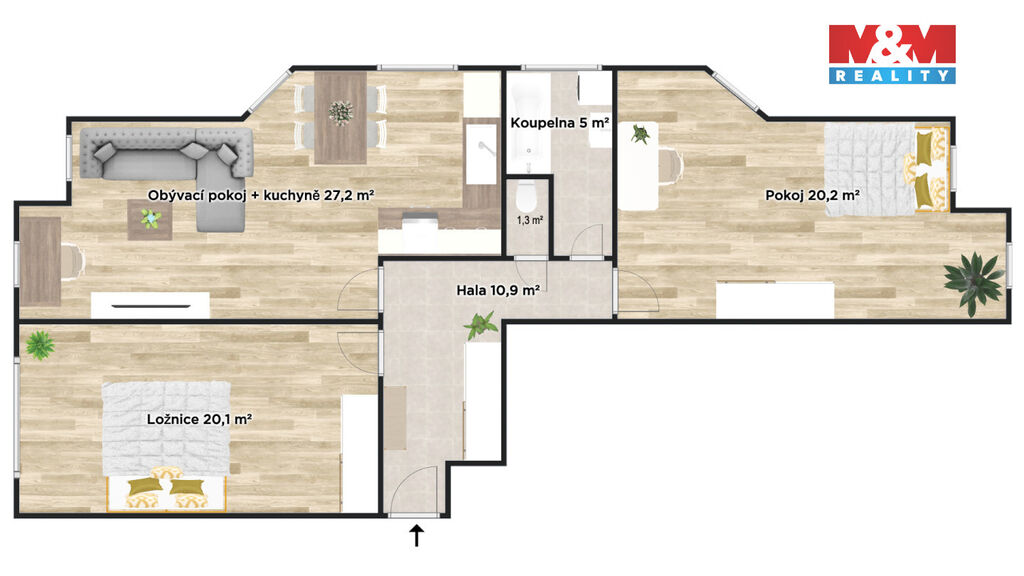 Byt má užitnou plochu 84,7 m² a nachází se v 1. patře zatepleného cihlového domu z roku 2007. Je světlý a vzdušný díky orientaci oken na tři světové strany.