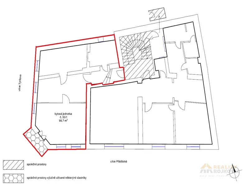 Prodej prostorného bytu 2+1 s celkovou plochou 66 m2 ve II. NP bytového domu v ulici Přadlácká. Dispozice: vstupní chodba, 2x obytná místnost, koupelna s WC, kuchyně a balkon. Vytápění ústřední - elektrokotlem, ohřev vody - el. bojler. Byt je připraven k rekonstrukci dle vlastních představ. Třetí nadzemní podlaží tvoří prostorné víceúrovňové podkroví, které je možné s jednotkou stavebně propojit.