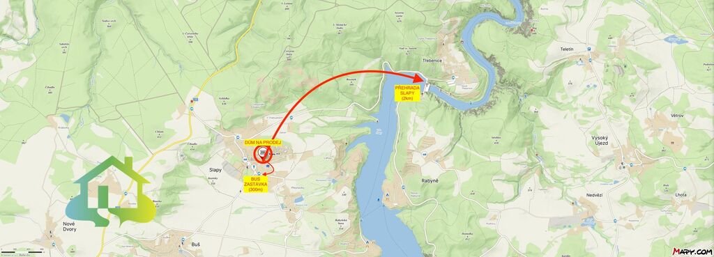 Jedná se o vyvolávací cenu nemovitosti v exekuční dražbě.. Nabízíme k prodeji formou exekuční dražby malebný rodinný dům s velkou zahradou v obci Slapy nad Vltavou č.p. 117, jen 2 km od přehrady. Nemovitost se nachází v klidné lokalitě s volnější zástavbou, v docházkové vzdálenosti od zastávky autobusu (cca 300 m) a s výbornou dostupností do Prahy – dojezdová vzdálenost cca 30 km.