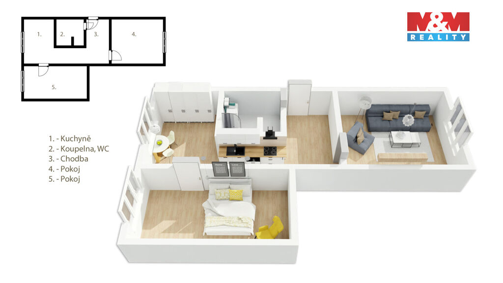 Nabízíme ke koupi světlý a prostorný byt 2+1 o podlahové ploše 62 m² v osobním vlastnictví, umístěný ve 4. patře panelového domu s výtahem. Součástí patra je lodžie, kterou je možné využívat společně s vedlejší bytovou jednotkou. Dům prošel revitalizací a na střeše je instalovaná solární elektrárna, což výrazně snižuje provozní náklady.