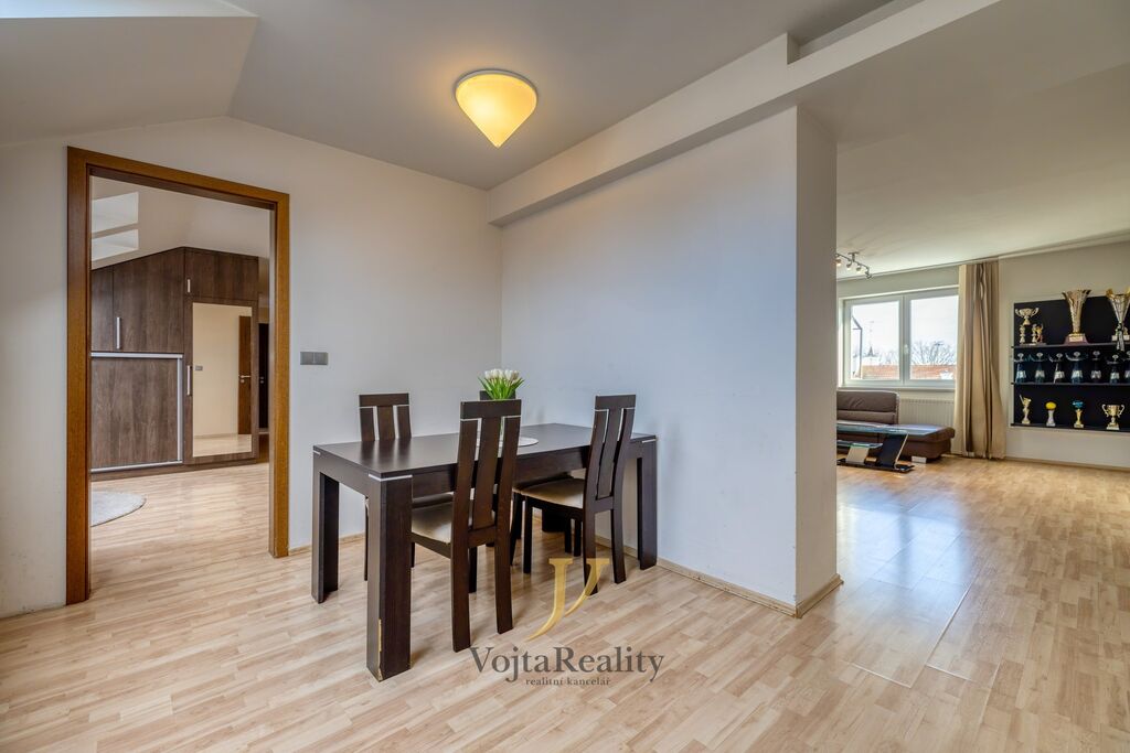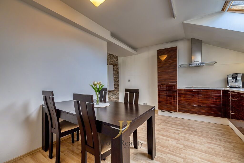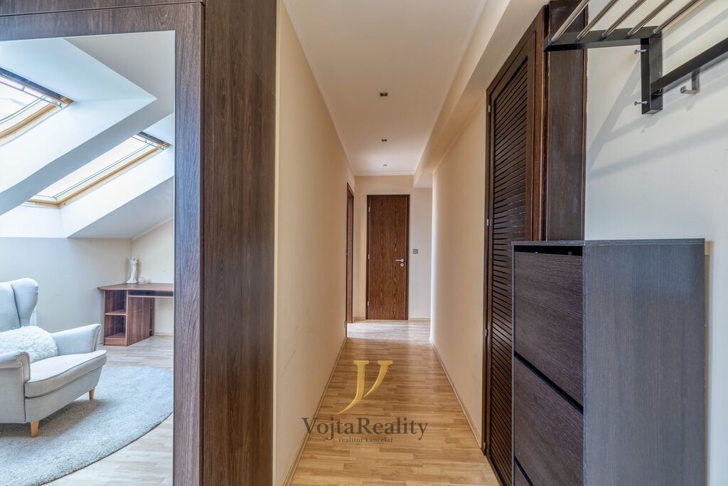 Nabízíme k pronájmu světlý a vzdušný podkrovní byt 3+kk o užitné ploše 120 m², který se nachází ve 4. podlaží cihlové budovy po kompletní rekonstrukci v roce 2007. Díky promyšlené dispozici je byt skvěle průchozí, s dostatkem úložných prostor a pohodlným zázemím pro rodinu.