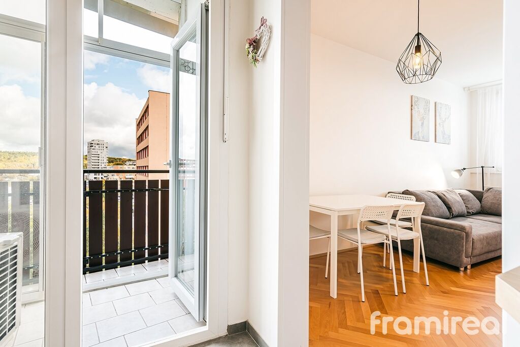 Byt je částečně vybaven – k dispozici jsou vestavěné skříně, pohovka, TV a kompletně vybavená kuchyňská linka se spotřebiči na míru. Po domluvě lze ponechat i další vybavení. O komfortní bydlení se postará klimatizace, praktická komora a lodžie s parádním výhledem na město a okolní zeleň, která přímo vybízí k odpočinku.