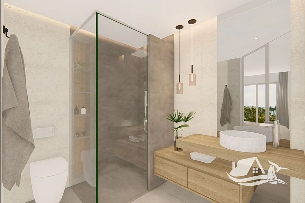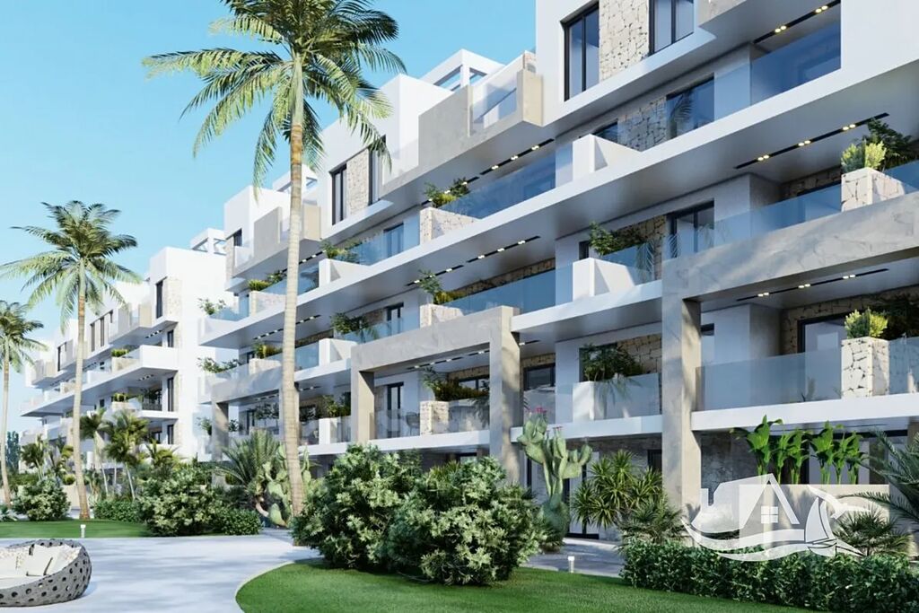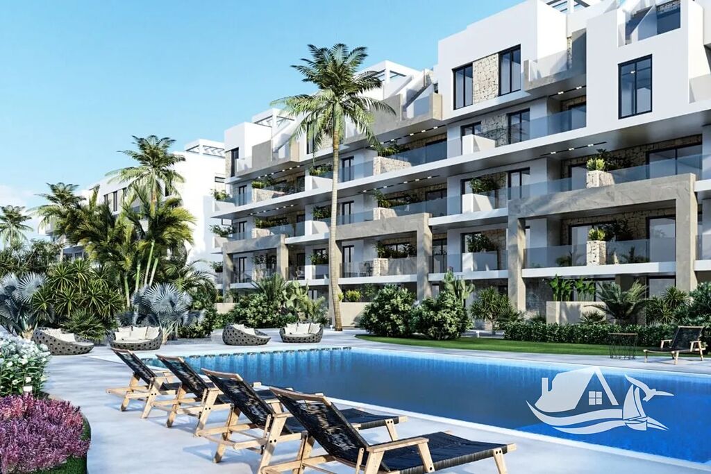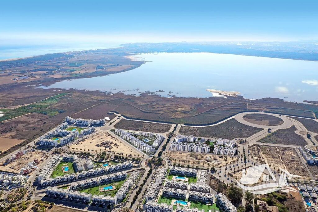 Tento elegantní apartmán o dispozici 3+kk a celkové ploše 75 m² nabízí pohodlí pro celoroční bydlení i rekreaci. Jeho dominantou je prostorná terasa o velikosti 19 m², odkud se otevírá uklidňující pohled na zeleň a solné laguny La Mata. Interiér je navržen v minimalistickém stylu s důrazem na vzdušnost a přirozené světlo. Otevřený obývací prostor s kuchyňským koutem tvoří přirozené centrum bytu, které doplňují dvě ložnice a dvě koupelny.