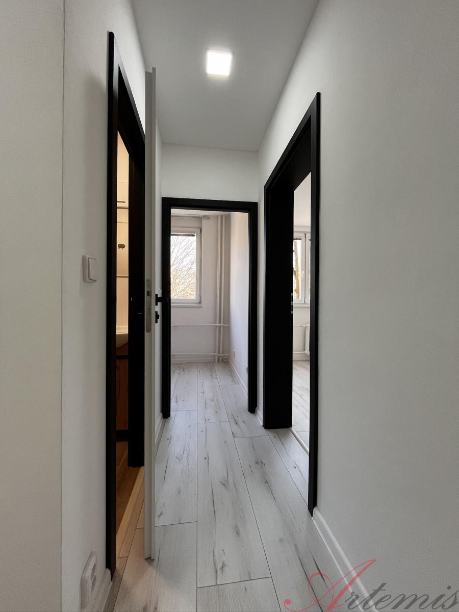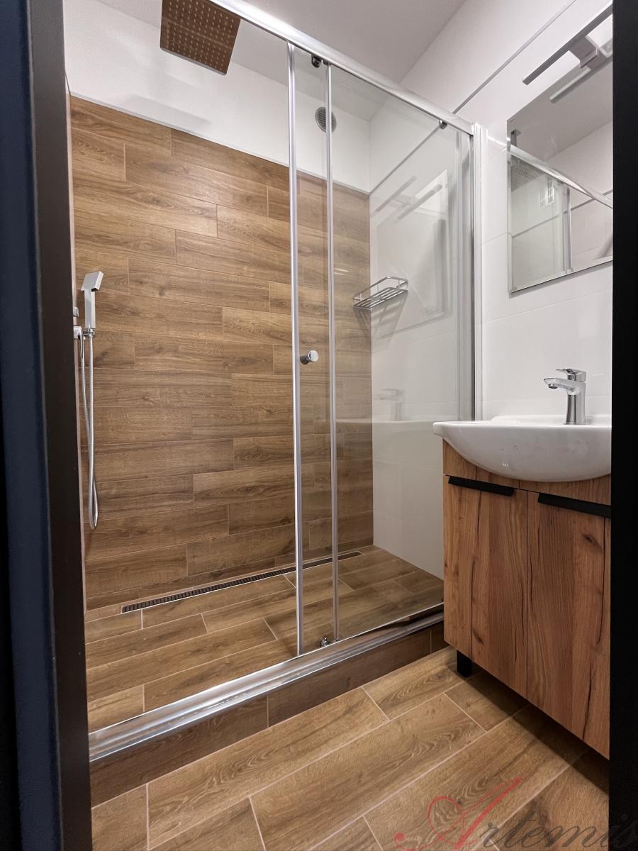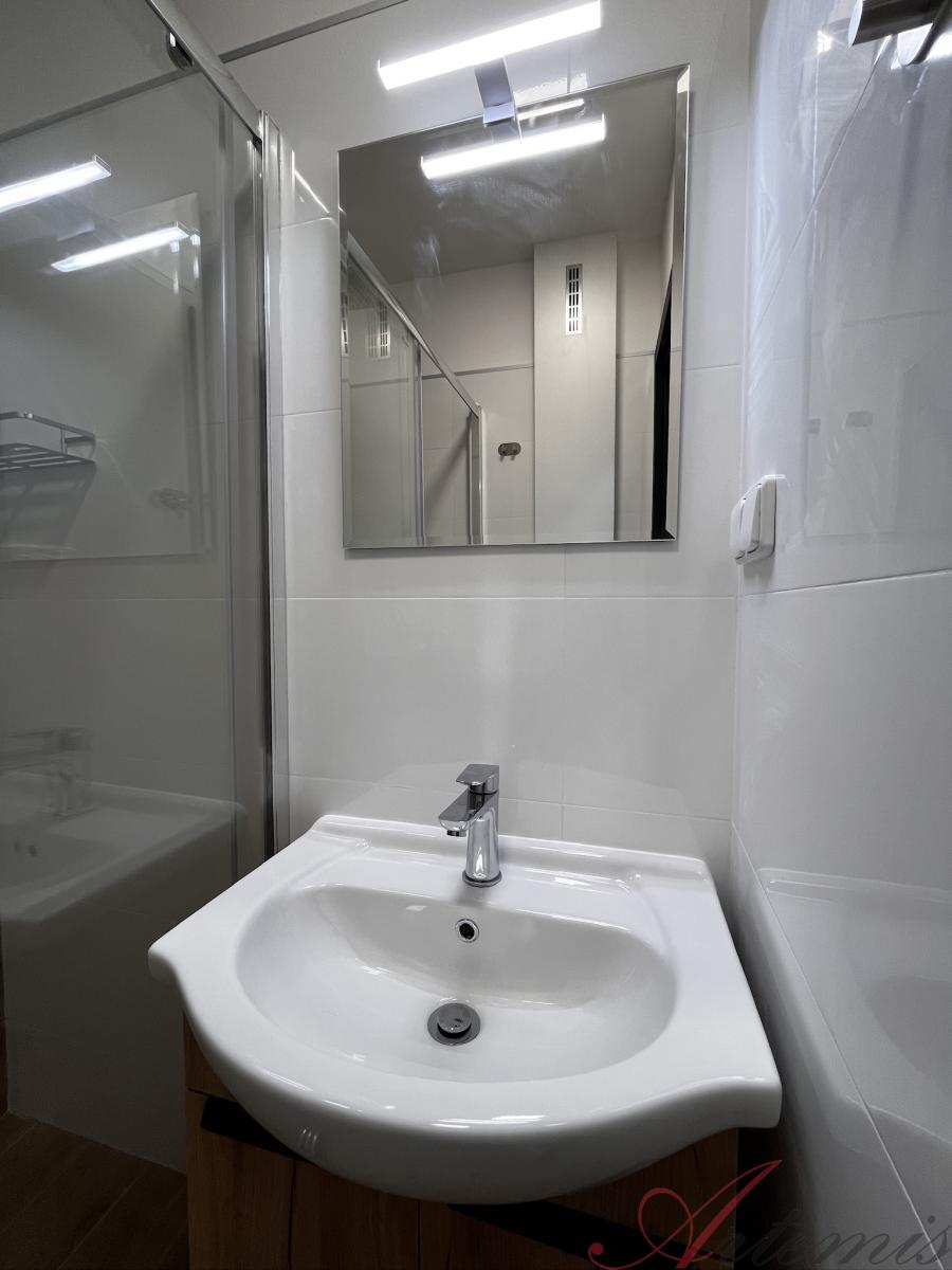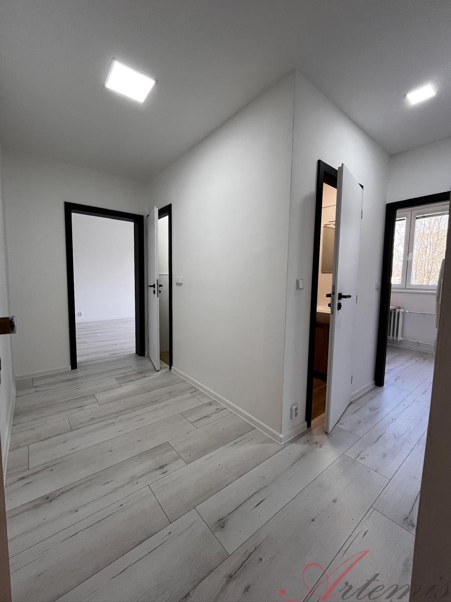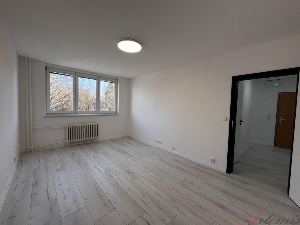Nabízený byt se nachází v 1.patře/11.patrového panelového, revitalizovaného domu a je po vkusné rekonstrukci - nová elektroinstalace, včetně nového rozvaděče, SDK podhledy s osvětlením, nové zásuvky a vypínače, vyzděné jádro, rozvody vody, sjednocení podlah v celém prostoru včetně položení plovoucí podlahy, nové omítky a výmalba. Bytové jádro je opatřeno novou sanitou, velkoformátovými keramickými obklady a dlažbou. Koupelně dominuje sprchový kout, umyvadlo se skříňkou a zrcadlo s osvětlením. WC s koupelnou jsou zvlášť.