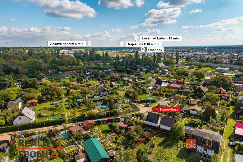 Zahrada láká k odpočinku, grilování, zahrádkaření. V okolí je klid, zeleň a přitom jen pár minut do centra Brandýsa i na dálnici.