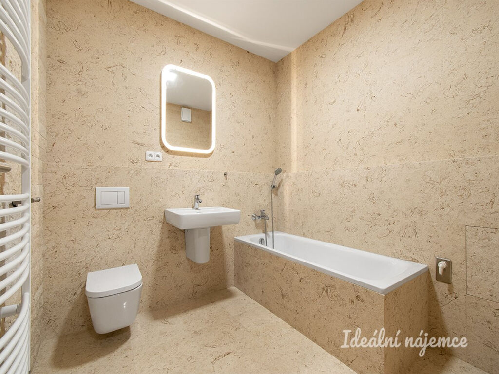 Tento byt se pronajímá nevybavený, což vám poskytuje možnost vytvořit si interiér podle svých představ. Prostorná kuchyně je vybavena lednicí, myčkou, elektrickou troubou, varnou deskou, mikrovlnnou troubou a digestoří.. Obývací část a ložnice jsou nevybaveny, ale nabízejí dostatek prostoru pro váš nábytek. V koupelně najdete vanu a toaletu.