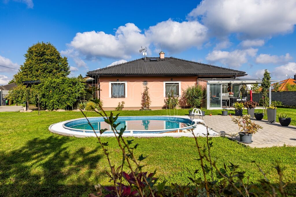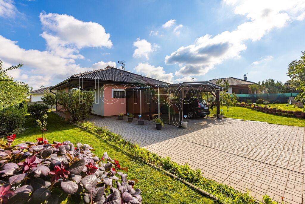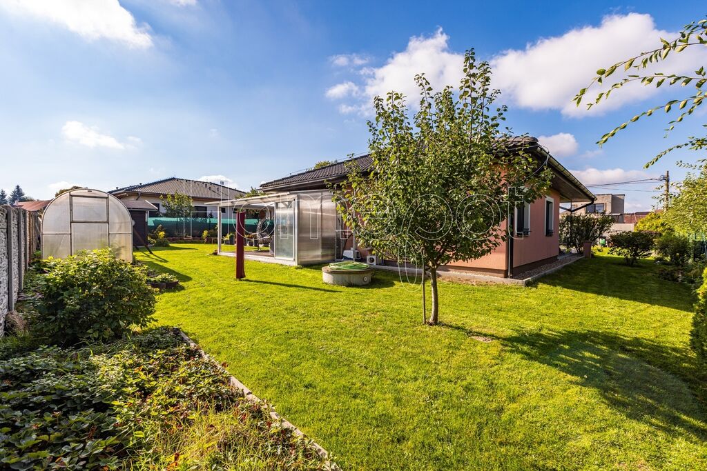 Pozemek o celkové výměře 911 m² je skutečnou oázou klidu. Zahrada (824 m²) není jen trávník, ale živý prostor pro relaxaci i zábavu. Nabízí bazén pro letní osvěžení, skleník pro vášnivé pěstitele a zahradní domek, který skvěle poslouží jako dílna pro kreativní práci nebo sklad nářadí. Kryté parkovací stání pro dvě auta chrání vaše vozy a je elegantně zakomponováno tak, aby nerušilo výhled.