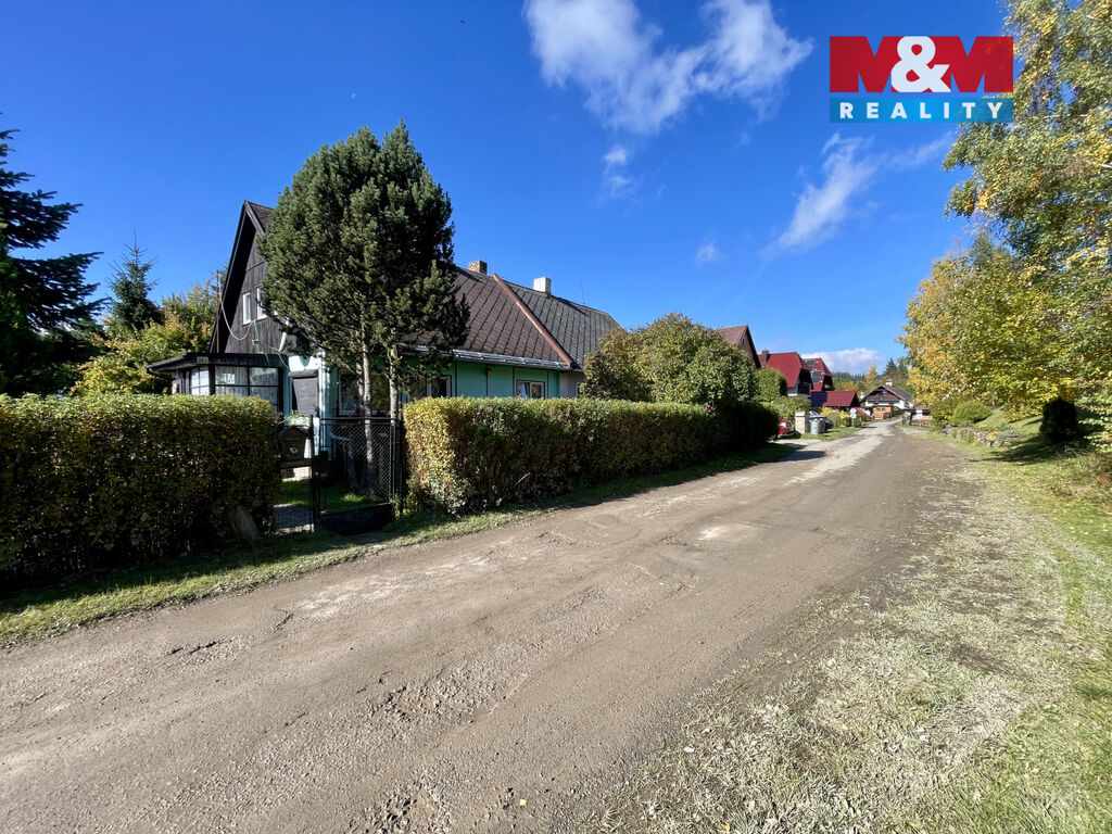 Nabízíme k prodeji rodinný dům o zastavěné ploše 73 m2 a celkovou výměrou pozemku 574 m2. Pozemek je rozdělen na okrasnou a hospodářskou část. Na zahradě najdete pergolu, hospodářský domek s dílnou, kde dříve byly slepice a králíci, také přístřešek pro parkování auta. Dům se skládá z přízemí a podkroví. Přízemí tvoří veranda, malá chodba, spíž, samostatné WC, kuchyň s jídelním koutem, obývací pokoj, ložnice a koupelna se sprchovým koutem. V 1. patře se nachází obytný pokoj a půda, kterou lze přestavět na další místnost. V domě jsou krbová kamna, jak v přízemí tak i v patře, vytápění je možné i radiátory napojené na kotel umístěný ve sklepě. Dům má plastová okna a je po obvodu zateplený, voda v plastu. Elektřina zůstala původní. Libínské sedlo nabízí krásnou přírodu po celý rok, v zimě oceníte sjezdovku s vlekem pouhých 100 m od domu. Pro více informací a prohlídku nás neváhejte kontaktovat