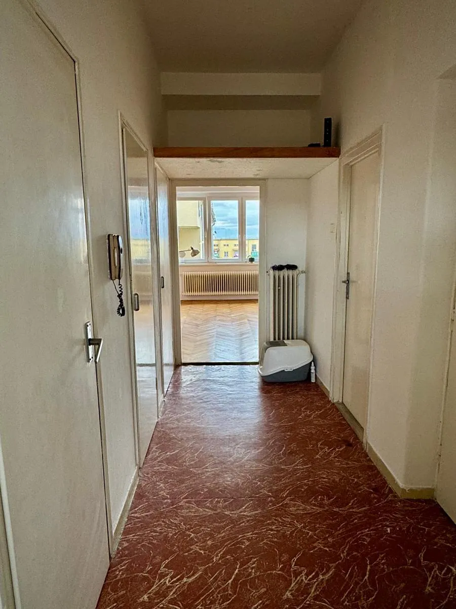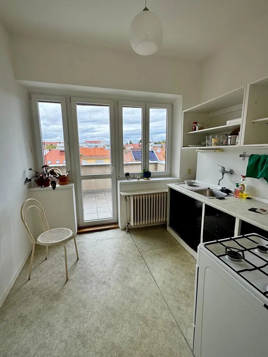 Zprostředkujeme Vám pronájem nezařízeného prostorného bytu 1+1 (cca 45 m2) v klidné části Černých Polí, na ul. Hoblíkova. Byt je v 5. patře nájemního cihlového domu s výtahem. Z kuchyně je vstup na krásnou terásku s výhledem, pokoj do vnitrobloku. Koupelna je s vanou, WC je samostatně. V prostorné kuchyni je kuchyňská linka a sporák. V pokoji jsou krásné, repasované parkety, v kuchyni a na chodbě lino. K bytu náleží komora, šatna a je k užívání sklep. Dům je po částečné rekonstrukci - plastová okna, zateplení, rozvody. Parkování je možné před domem. Elektřinu a plyn (na vaření) si nahlásíte na sebe. Ideální pro dlouhodobý nájem, možnost přihlášení k trvalému pobytu. Byt je aktuálně volný, vymalovaný. Klíče v RK, pro domluvení prohlídky volejte makléři.