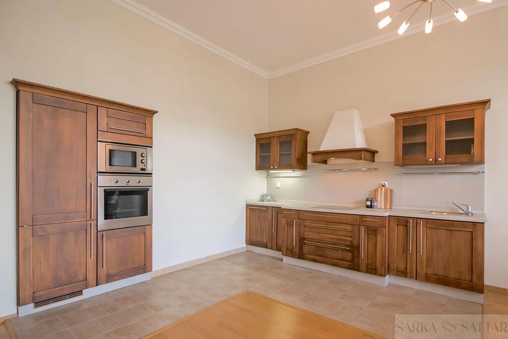 Kuchyň je plně vybavena: lednice, mrazák, elektrická trouba, mikrovlnná trouba, varná deska a digestoř .