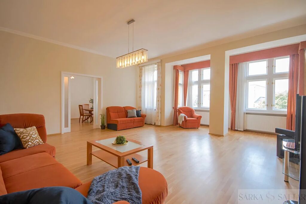 Exkluzivně nabízíme k prodeji prostorný byt 3+1 130m2 v 3.NP s výtahem v secesním domě arch. Brzáka na Masarykově nábřeží, Praha 1.
