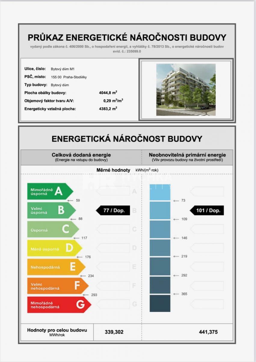 Byt spadá do energetické třídy B úsporný provoz a nízké náklady na energie.