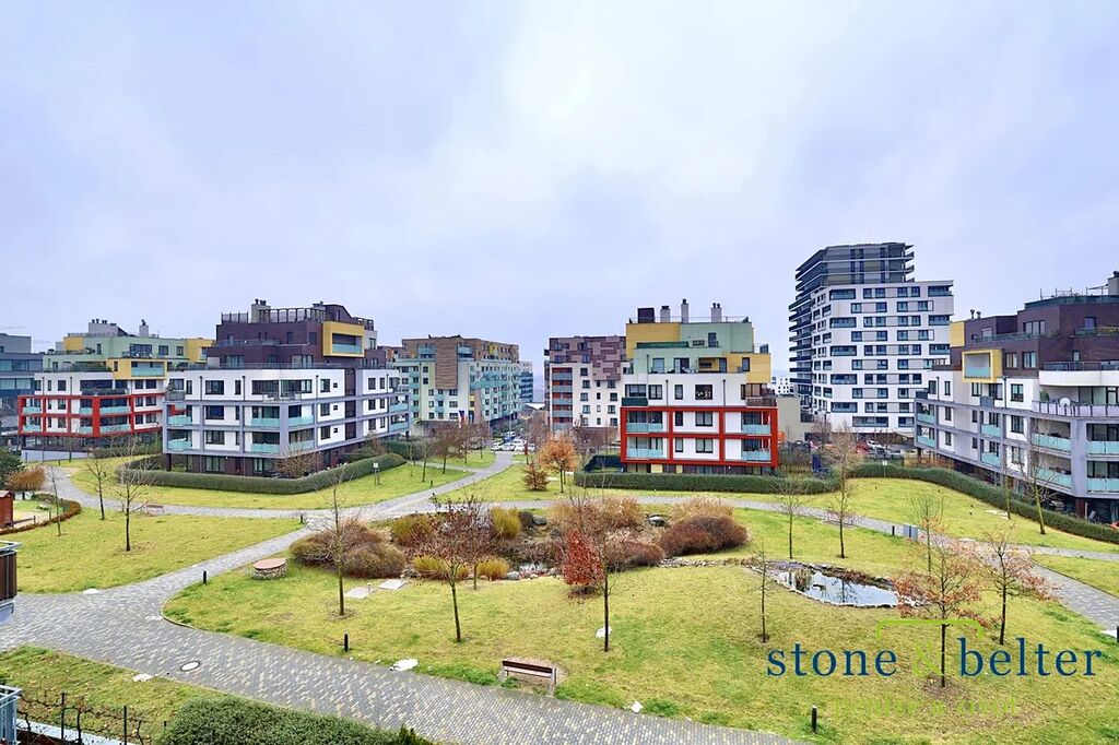 obchody, restaurace, kavárny, lékárnu a lékařské služby, stanici metra Stodůlky (trasa B) – pouhých 300 metrů od domu, autobusovou zastávku a skvělé spojení na Pražský okruh i Letiště Václava Havla (cca 11 minut jízdy), nákupní centrum Metropole Zličín – pár minut metrem nebo autem.