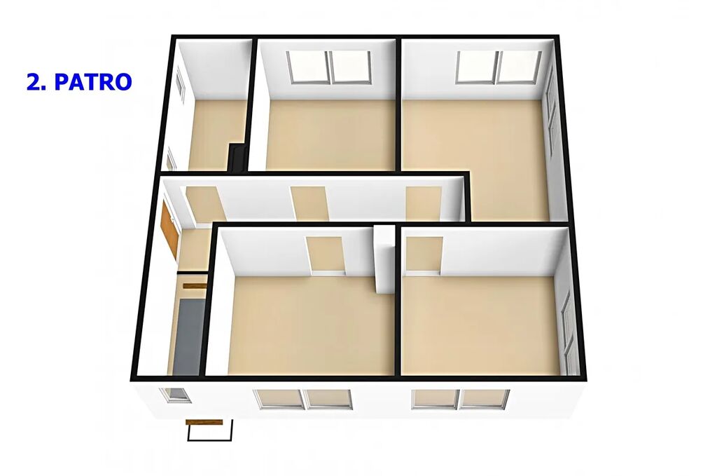 Podlahová plocha každého podlaží je cca 85 m2. Všechna tři podlaží mají plochu 250 m2.