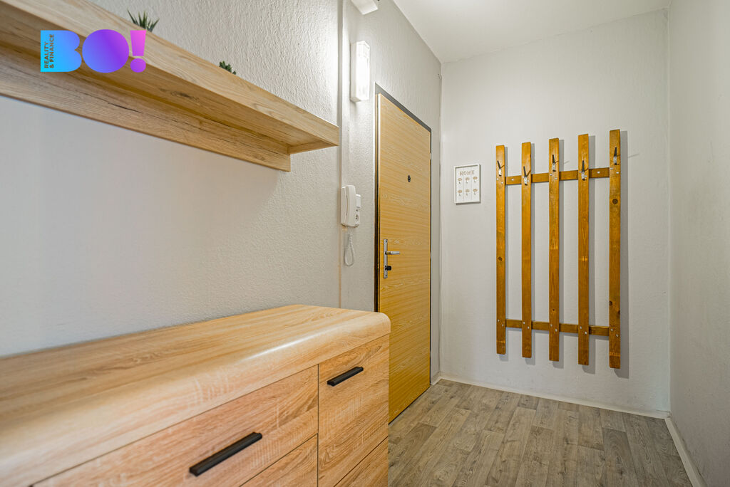 Byt je v původním, ale pečlivě udržovaném stavu – čistý, světlý a ihned obyvatelný. Dispozice potěší: pokoje nejsou průchozí, každý má své soukromí. Jeden ze tří pokojů plynule navazuje na lodžii, která nabízí příjemné posezení s výhledem do zeleně po celý rok. Kuchyně je prakticky řešená se zánovní kuchyňskou linkou a špíží, kterou ocení každý, kdo rád vaří a má rád pořádek. Koupelna a WC jsou oddělené, což zvyšuje komfort denního provozu. K bytu patří sklepní koje, praktické místo pro kola, sportovní výbavu či sezónní věci.