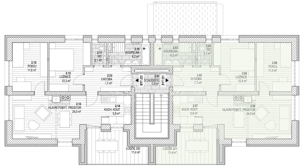 Součástí ceny bytu je parkovací stání a venkovní sklepní kóje umístěná u parkovacích stání.