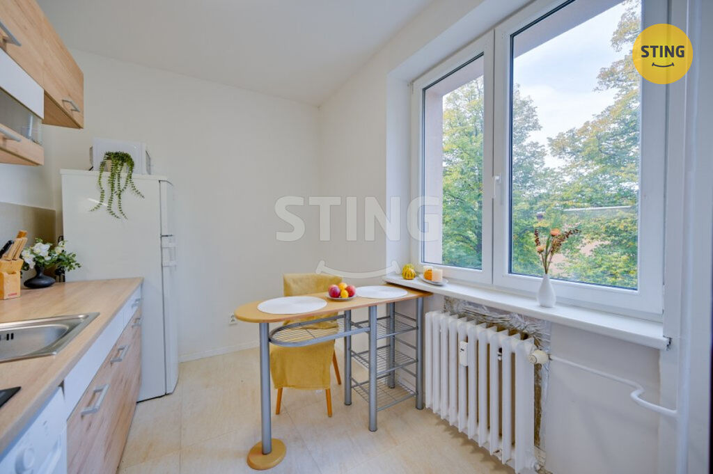 Byt prošel rekonstrukcí v roce 2021 – nová kuchyně, koupelna se sprchovým koutem a místem pro pračku, samostatné WC. K bytu náleží zasklený balkon (3,7 m2) s výhledem do zeleně a sklep (3,6 m2). Součástí prodeje jsou volně stojící spotřebiče v kuchyni (myčka nádobí, lednice, mikrovlnná trouba) a pračka.