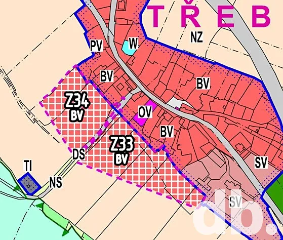 Pozemek je dle platného územního plánu součástí plochy Z33 se způsobem využití jako bydlení v rodinných domech – venkovské bydlení (BV).