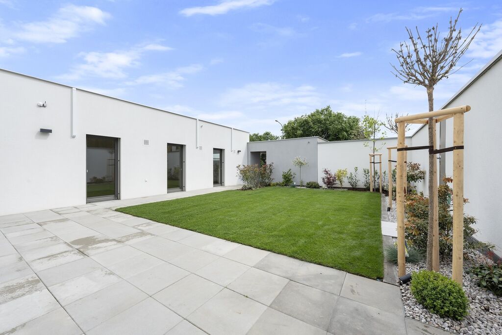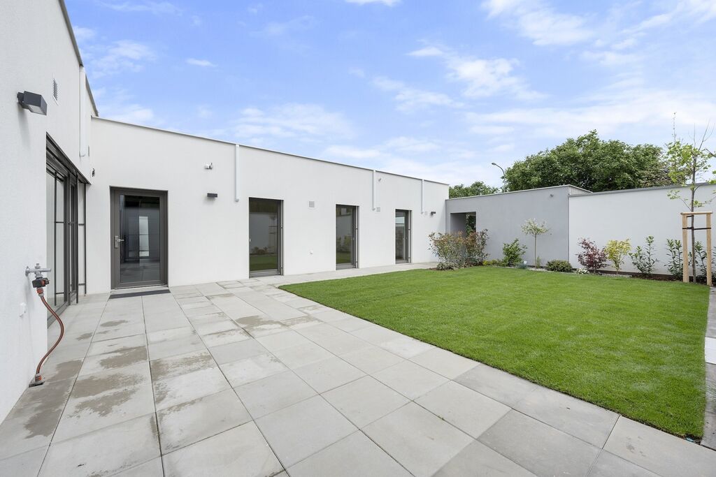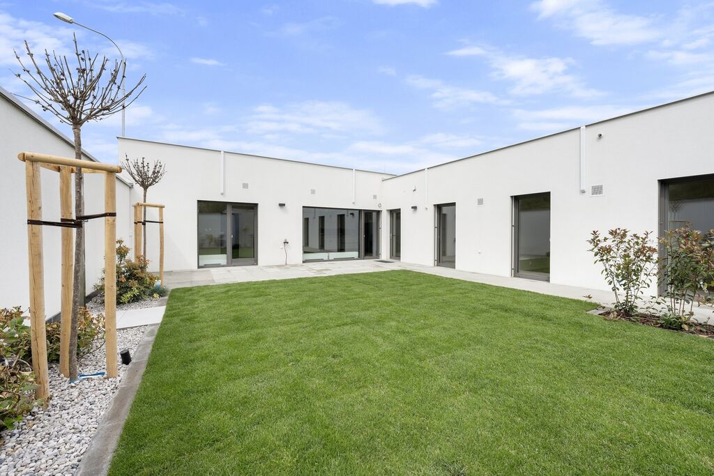 Nový jednopodlažní dům o dispozici 5+kk (160m2) + 11m2 venkovní sklad, vstupní portál 5m2 a dvě parkovací stání.