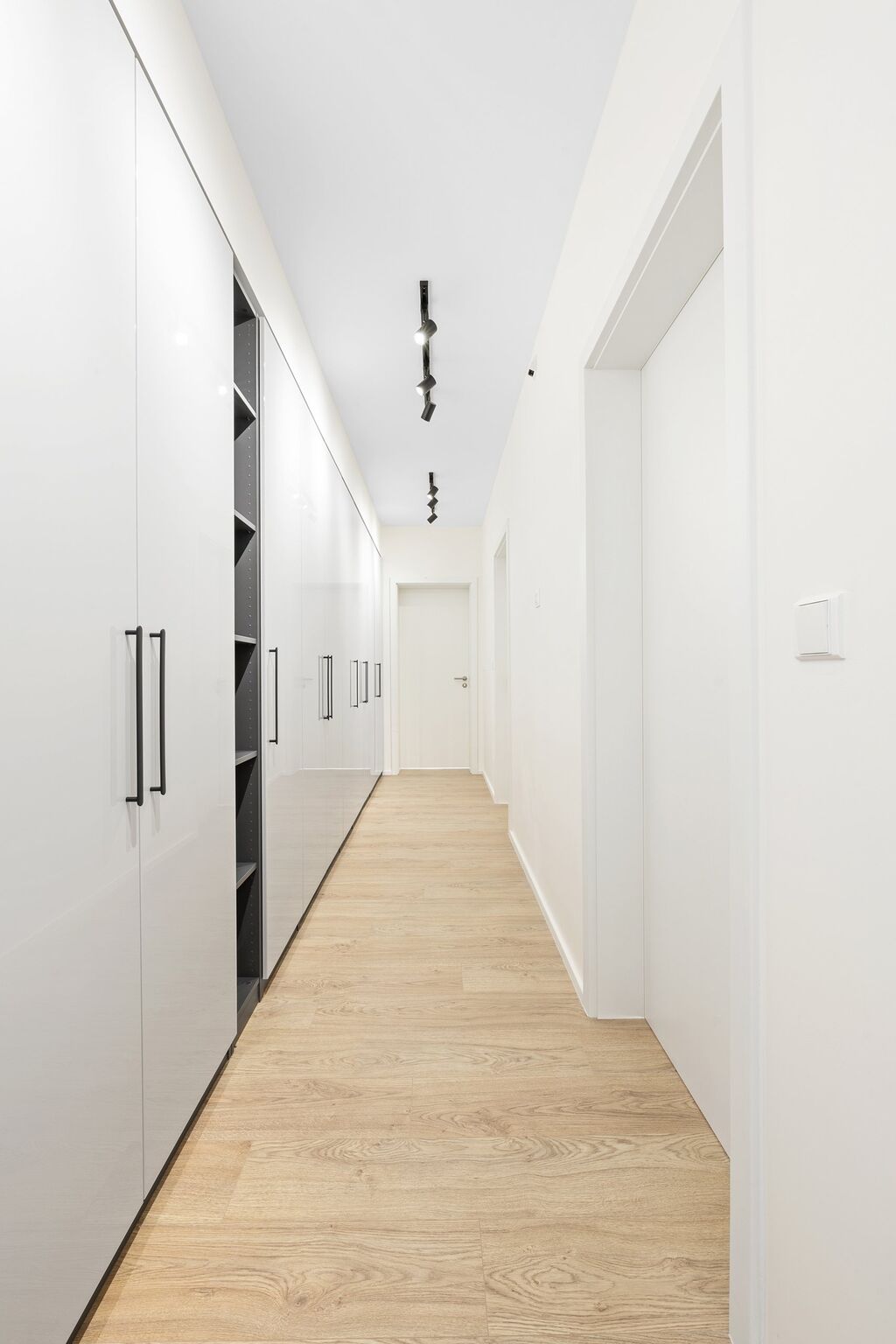 V domě se nachází 4 x ložnice z čehož jedna má k dispozici šatnu a vlastní koupelnu. Součastí domu je 2x sprchový kout, 1x vana a celkem 3xWC. Kuchyně je vyrobena na míru od společnosti Hanák Interiér. V současné chvíli zbývá již jen namontovat kamerou desku a osadit digestoř. Kuchyně je vybavená, myčkou, moderní troubou, mikrovlnou troubou, americkou lednicí, digestoří a prostornou indukční deskou. Kuchyně má k dispozici mnoho úložných prostorů a je propojená s obývacím pokojem. Velkou výhodou domu je variabilita. Ze všech pokojů je možné vstoupit na novou zahradu. V současné chvíli zbývá jen roztáhnout závlahu a travní koberce. Pravé křídlo domu ve kterém se nachazí tři ložnice propojuje dominantní chodbat ve které je prostorná a moderní šestimetrová skříň s uloženými prostory. V předsíňi domi je dvoumetrová skříň s botníkem a úložným prostorem na kabáty.
