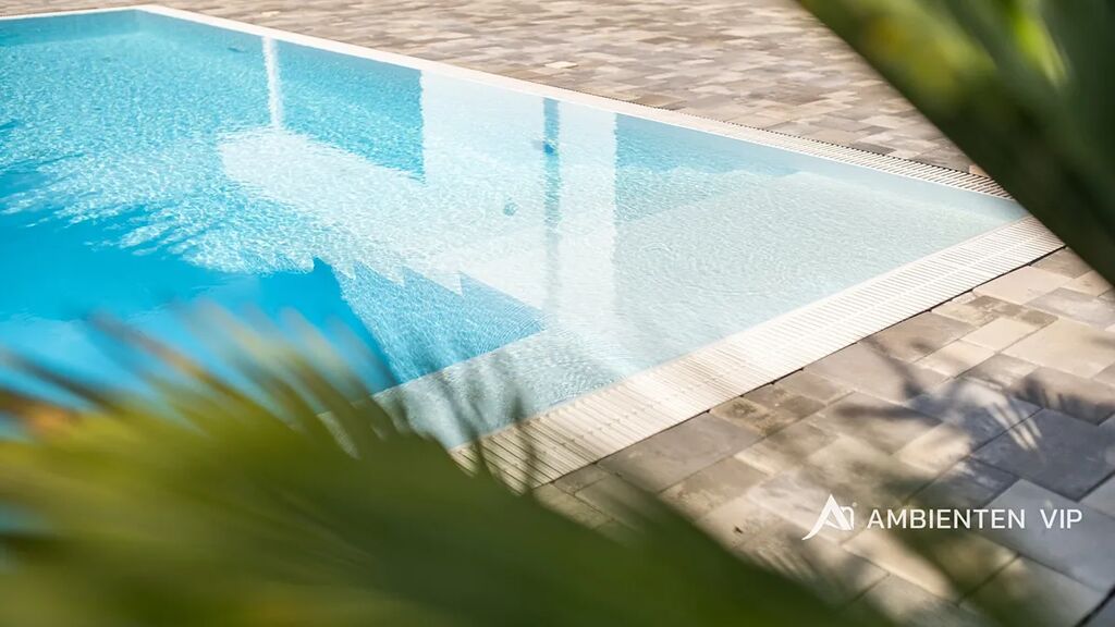 Pro rodinný dům je k dispozici také venkovní kuchyně, ke které náleží plynový gril. Předností je i soukromý bazén se slanou vodou o velikosti 8 × 4 metry. Dům je napojen na samostatné podružné měřidlo elektřiny a vody a jeho vytápění zajišťuje tepelné čerpadlo (vzduch/voda) a dva elektrické bojlery – samostatné pro vytápění a ohřev TUV. Dům má teplovodní podlahové vytápění. Celý prostor lze zakódovat pomocí zabezpečovacího systému Jablotron a chráněn je také kamerovým dohledem.
