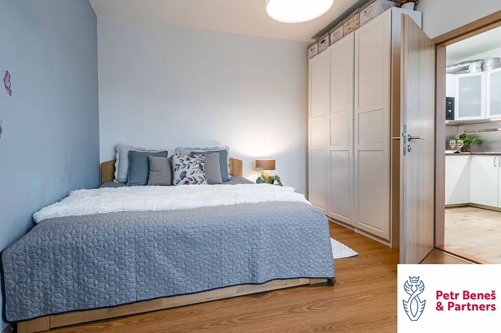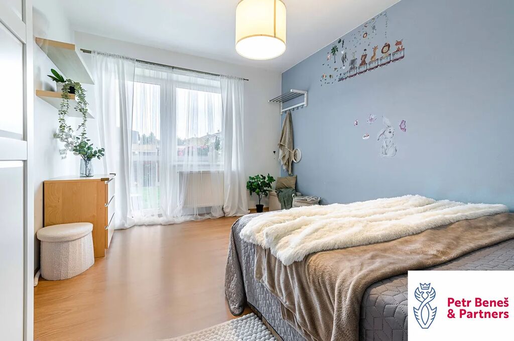 Byt je zánovní, světlý a propojený s venkovním prostorem. Díky předzahrádce působí otevřeně, volně a domácky – zkrátka místo, kde se dobře dýchá.