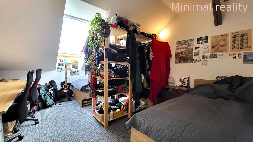 Vedle kuchyně se nachází dva pokoje. Oba pokoje jsou vybaveny dvěma postelemi, šatní skříní a pracovními stoly.