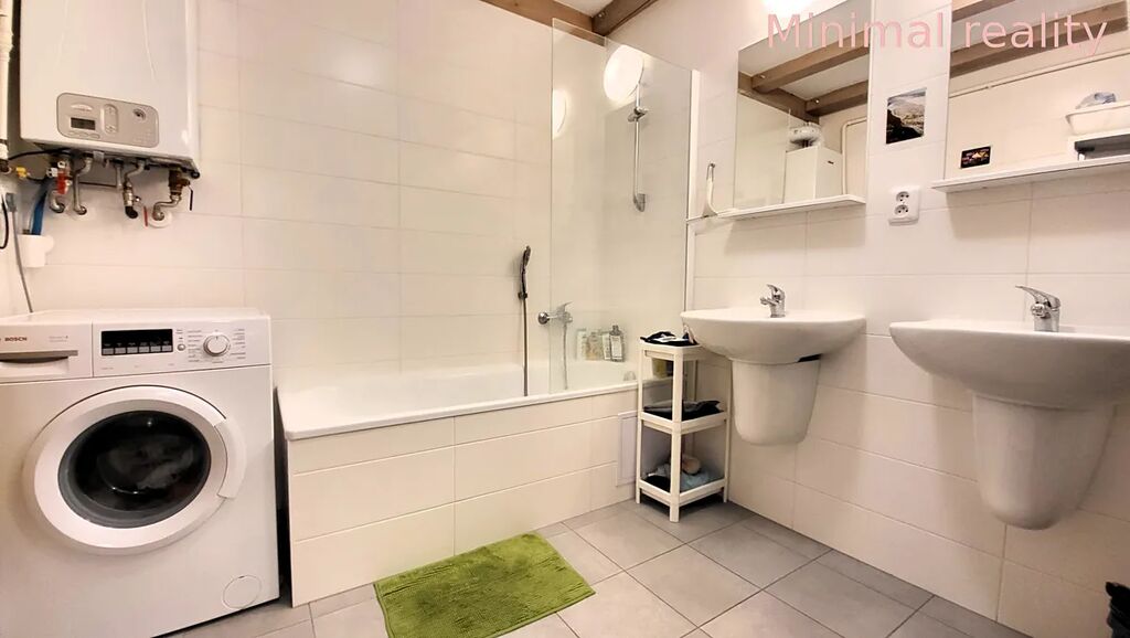 Koupelna je vybavena vanou se skleněnou zástěnou, dvěma umyvadly a zrcadly, pračkou značky BOSH a ventilátorem. Toaleta je samostatná.