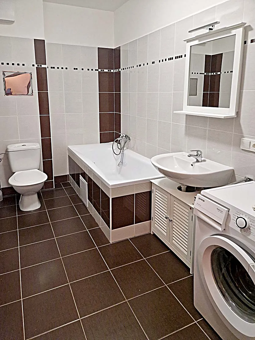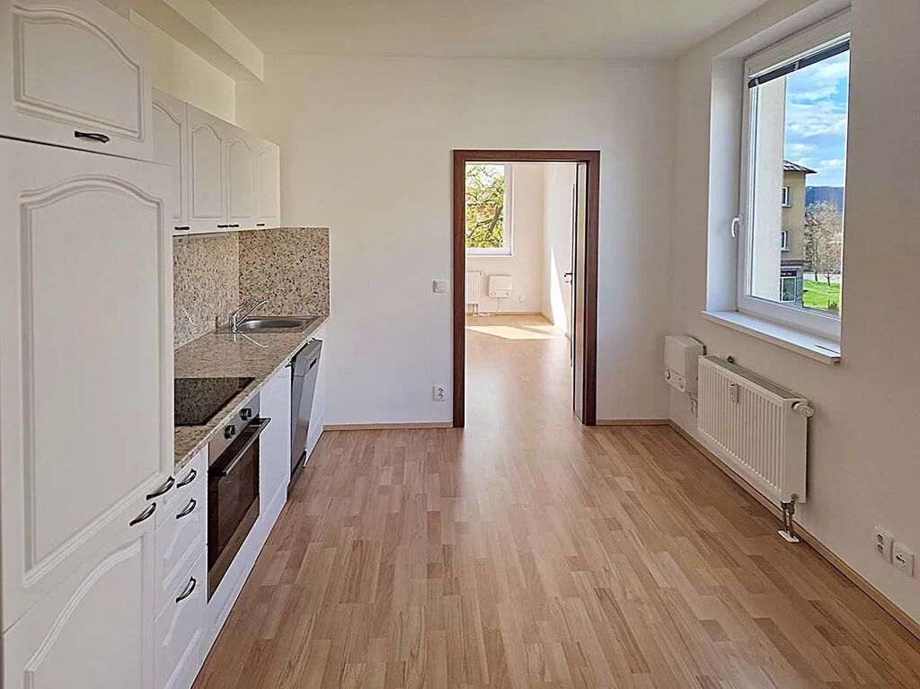 Nabídka pronájmu bytu 1+1 (39,96 m2) + balkón (1,5 m2) + komora/sklep (1,76 m2), který se nachází v 1.patře cihlové novostavby bytového domu se společnou zahradou v Praze 4 - Komořany, ul. Krupná. Byt je vybaven: kuchyňskou linkou se zabudovanými spotřebiči (el. indukční varnou deskou, el. troubou, myčkou, chladničkou s mrazákem), digestoří, automatickou pračkou v koupelně a věšákovou stěnou s botníkem v předsíni. Byt disponuje kuchyní (15,41 m2) se vstupem na balkón, pokojem (15 m2), předsíní (4,43 m2) a koupelnou s vanou + WC (5,12 m2). Na podlaze je položena dlažba v kombinaci s plovoucí podlahou, okna jsou plastová, vybavena žaluziemi (orientace S,V,Z-str.), v pokoji a kuchyni je instalována rekuperační jednotka a datové rozvody pro příjem kabelové TV a i-netu. Komora (sklep) je umístěna na patře - vedle bytu, oplocená zahrada je společná pro všechny uživatele domu. V domě si lze pronajmout kryté parkovací stání, umístěné v suterénu domu. V blízkosti domu se nachází BUS zastávka "Na Šabatce", vlak, stezka pro kolo a in-line brusle vedoucí podél vltavského břehu. Jedná se o kvalitní bydlení v blízkosti přírody v lokalitě autem nepříliš vzdálené od centra města, BUSem s přímým spojením např. do Modřan (5min. jízdy). Byt bude volný od 3.11.2025 a je vhodný pro 1-2 osoby, nekouřící v bytě a bez domácích mazlíčků. Společně s nájemným 16.000,-Kč platíte měsíčně popl. ve výši 3.000,-Kč pro 1 osobu (+cca 600,-Kč za druhou osobu) + elektřina (převod). Vratná kauce je ve výši 1 nájmu vč. poplatků a provize ve výši 1 nájmu. V případě zájmu neváhejte zavolat či napsat, ráda Vás osobně uvítám na prohlídce bytu. Nejbližší prohlídka je v pondělí 3.11.2025, termín si prosím zarezervujte telefonicky.
